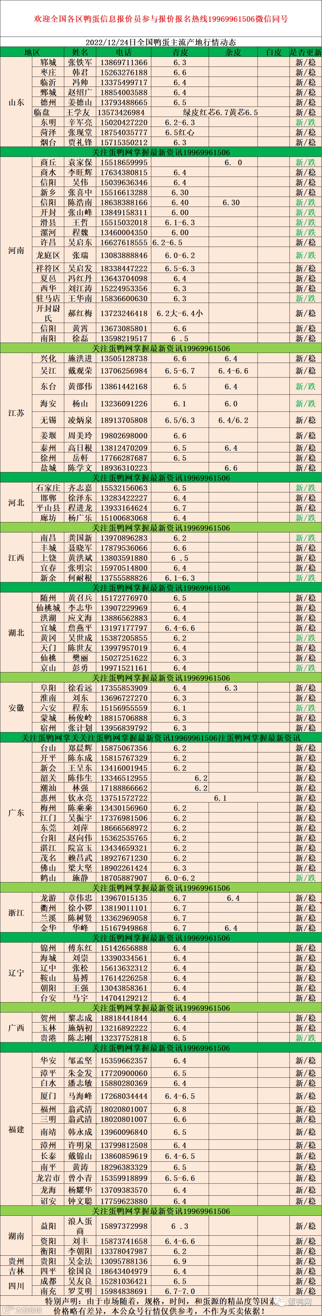 2022年12月24日鸭蛋报价