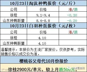 一、10月22日晚至10月23日 白羽肉鸭报价;