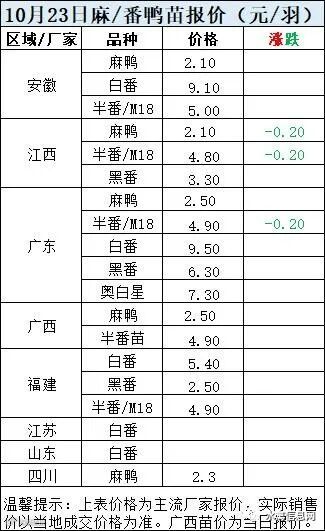 二、2022年10月23日麻鸭苗、半番鸭苗报价;