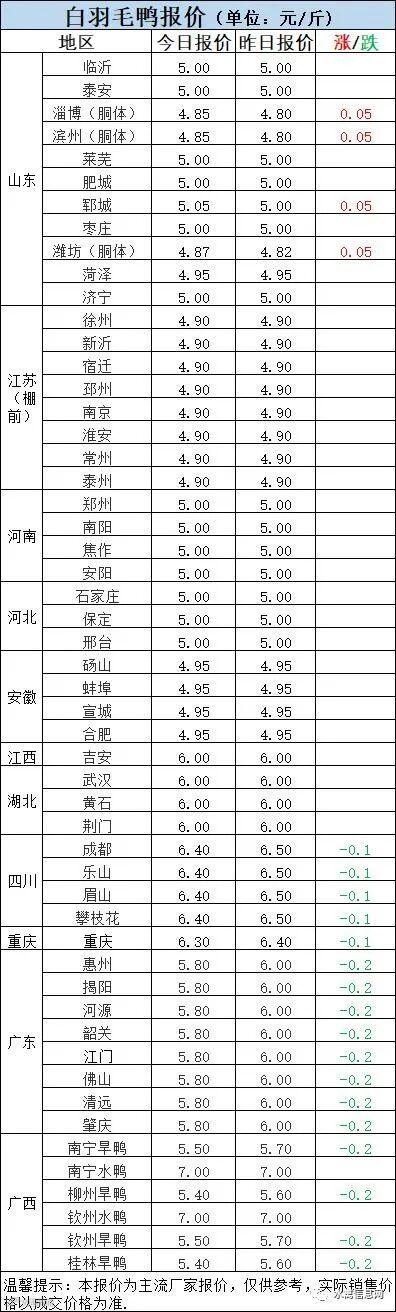 北方市场毛鸭报价以稳为主,局部调整。合同区域冷藏回收合同为主,当前冷藏普遍亏损态势,市场鸭收购情绪不高。