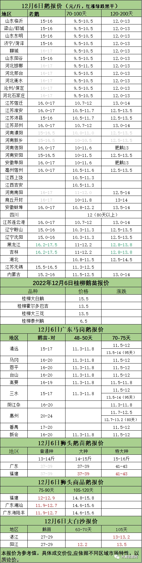 2022年12月06日鹅种蛋价格(元/枚)部分停报