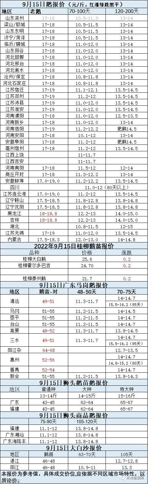 2022年9月15日鹅价快报