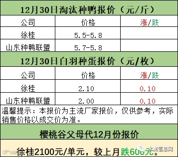 一、12月29日晚-12月30日白羽肉鸭报价;