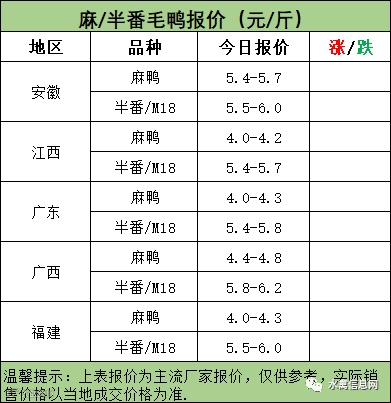 麻鸭苗报价弱稳;半番鸭苗报价平稳。