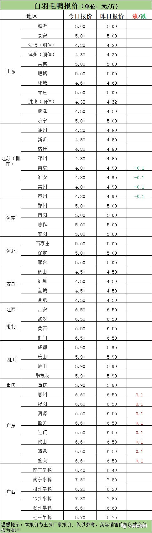 南方活禽区域白鸭报价企稳底部抬头,广东上涨。