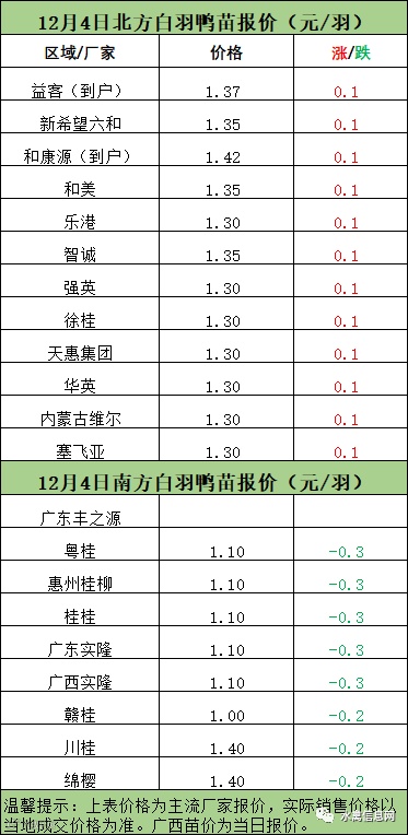 一、12月3日晚-12月4日白羽肉鸭报价;