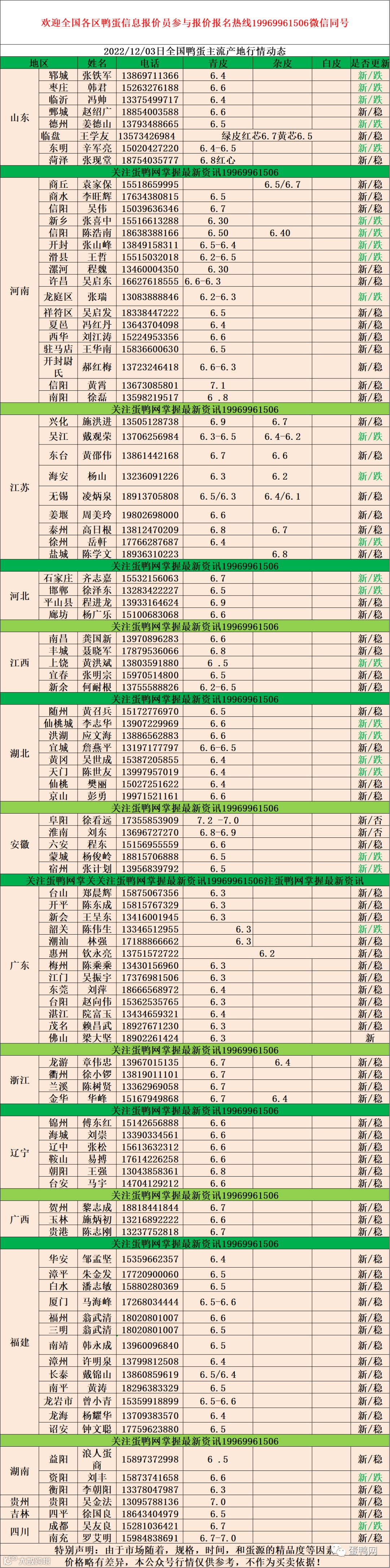 2022年12月3日:初产至10个头5.5元,10个头至9个头6.0元,9个头至8个头6.2元,8个头至7.5个头6.4,7.5个头至大蛋6.6元。