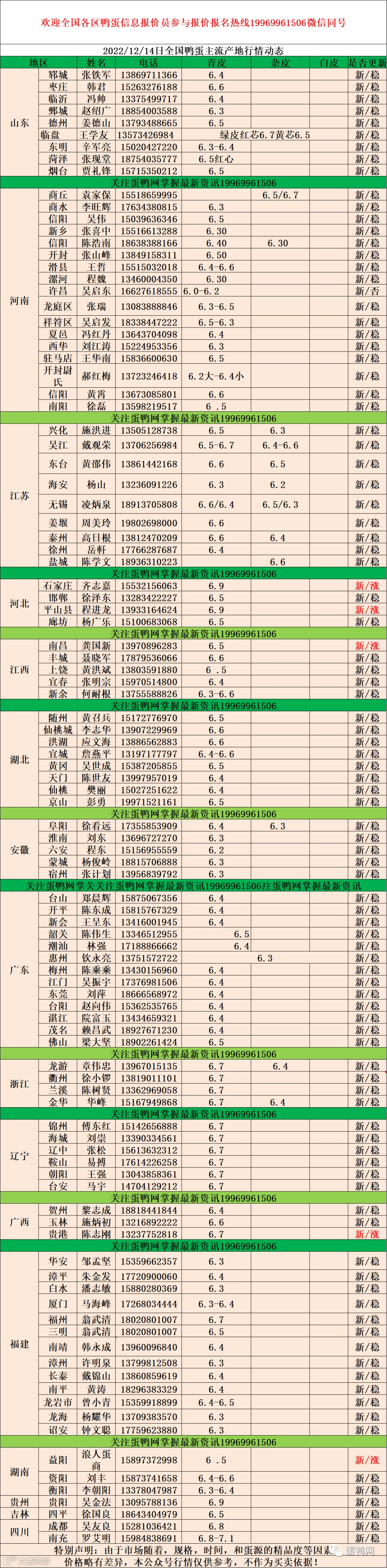 2022年12月14日鸭蛋报价