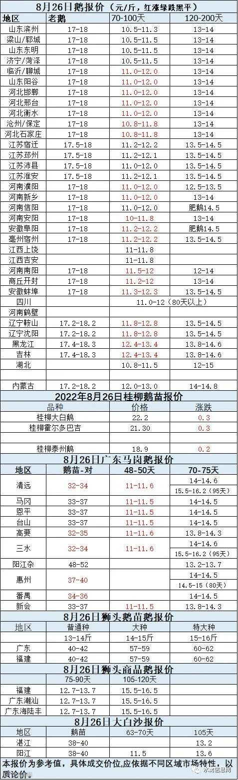 2022年8月26日各品种鹅苗价格