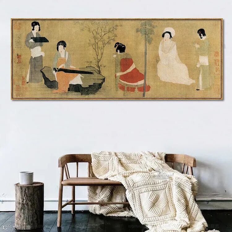 *休息室卷竹帘画