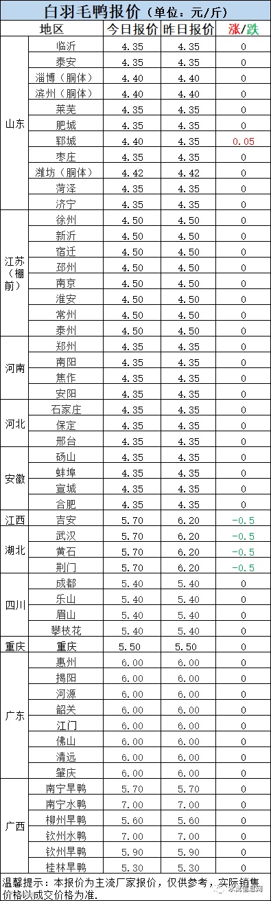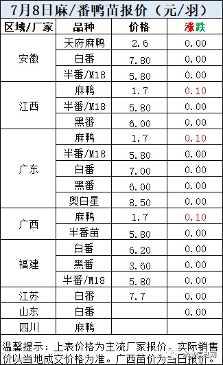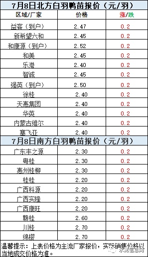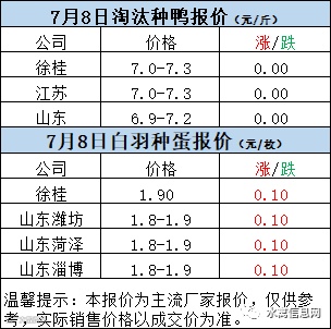 一、7月7日晚至7月8日 白羽肉鸭报价