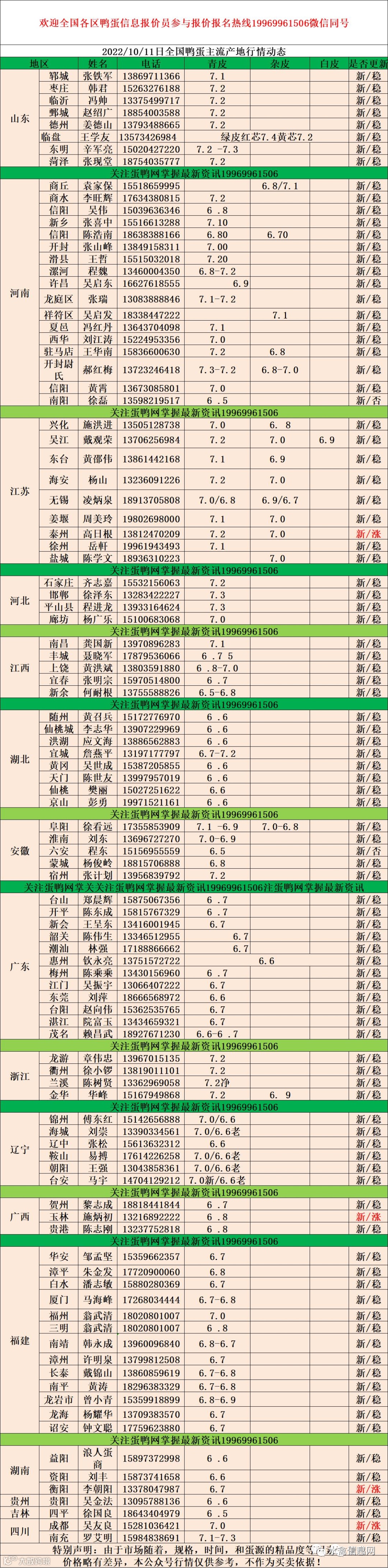 2022年10月11日鸭蛋报价