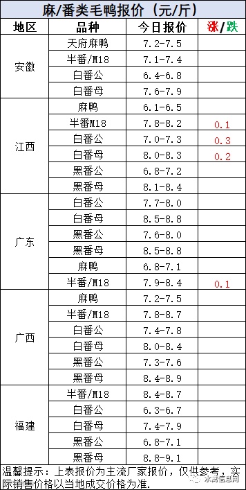 明日鸭苗报价北方上涨0.1元/羽,南方持稳。市场激烈拉锯,鸭价虽持续承压,但计划尚可,苗量与需求不断磨合,价格趋强走势。