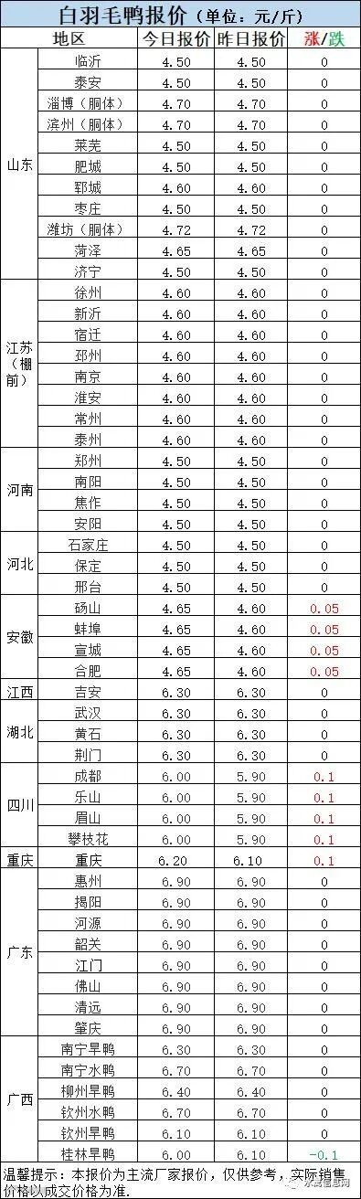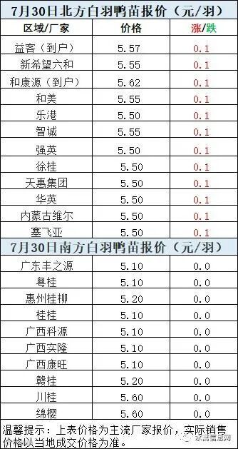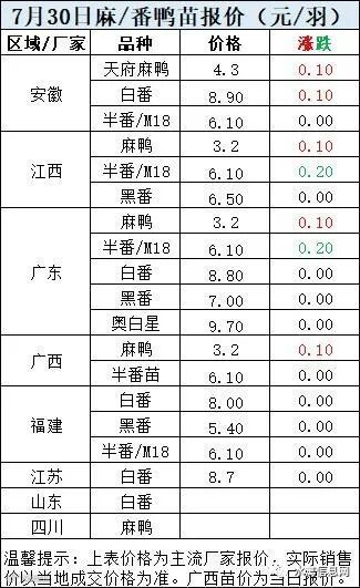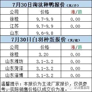 一、7月29日晚至7月30日 白羽肉鸭报价