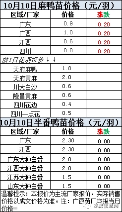 二、10月10日 麻鸭苗、半番鸭苗报价;