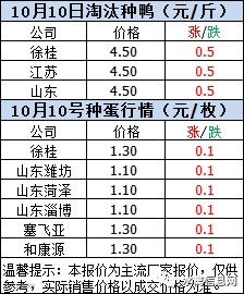 一、2020年10月10日白羽鸭苗报价;