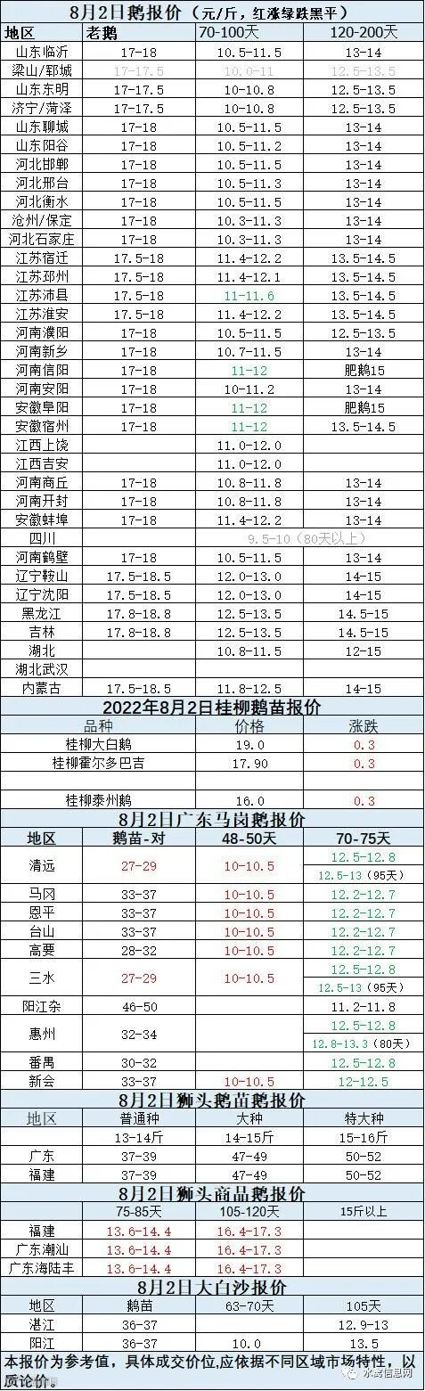 2022年8月02日鹅种蛋价格(元/枚)部分停报