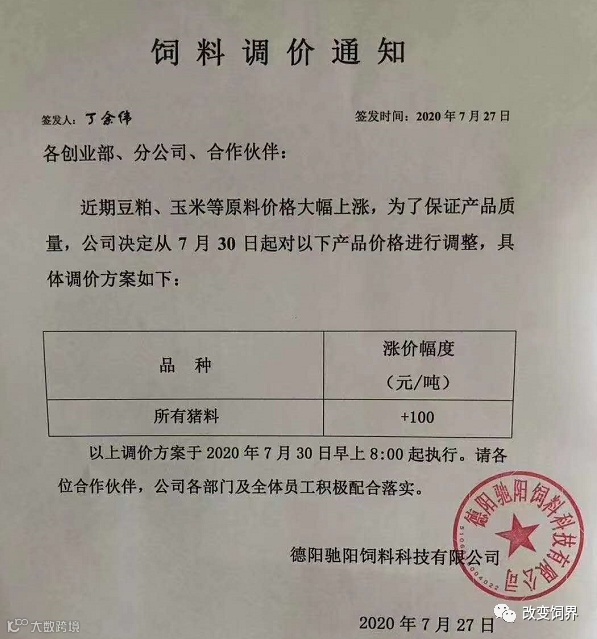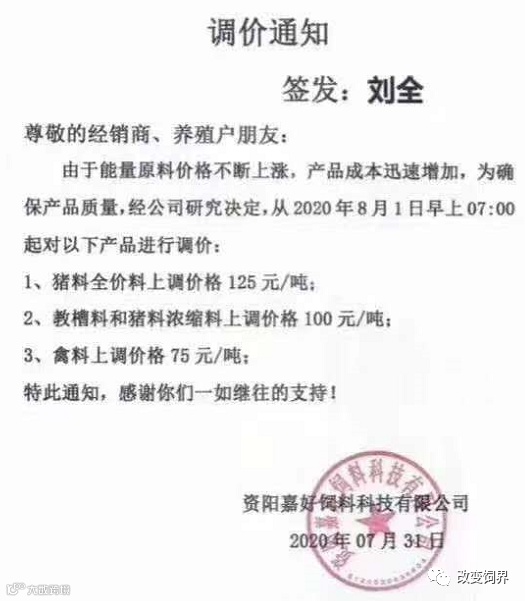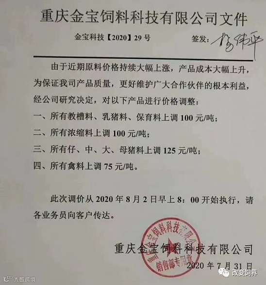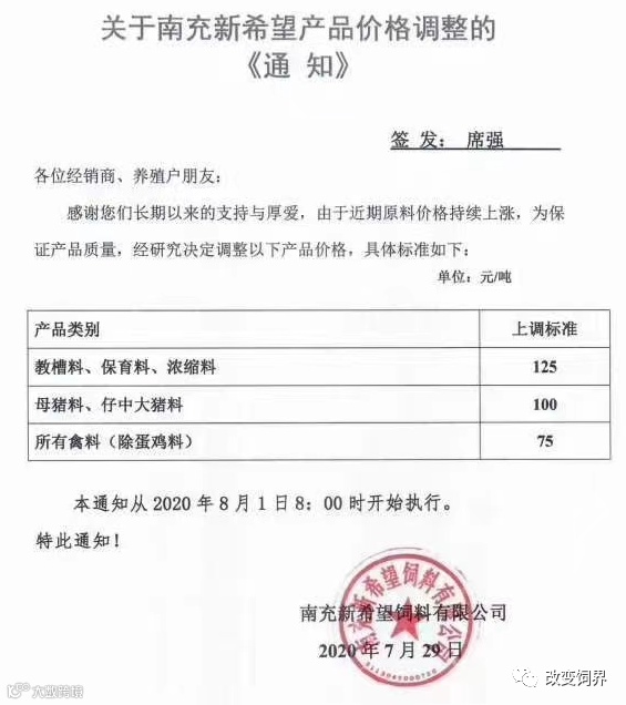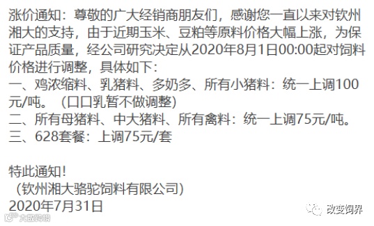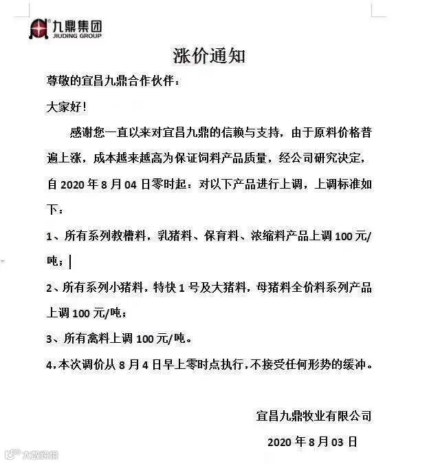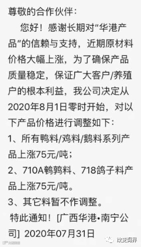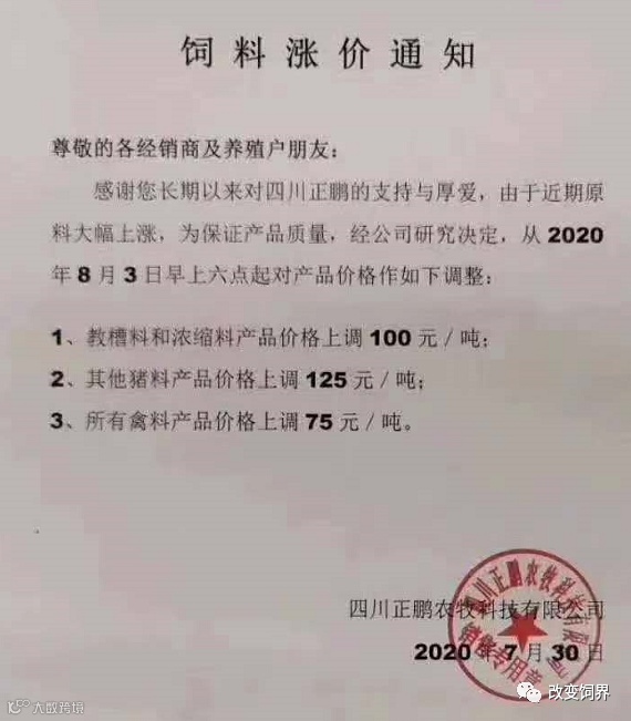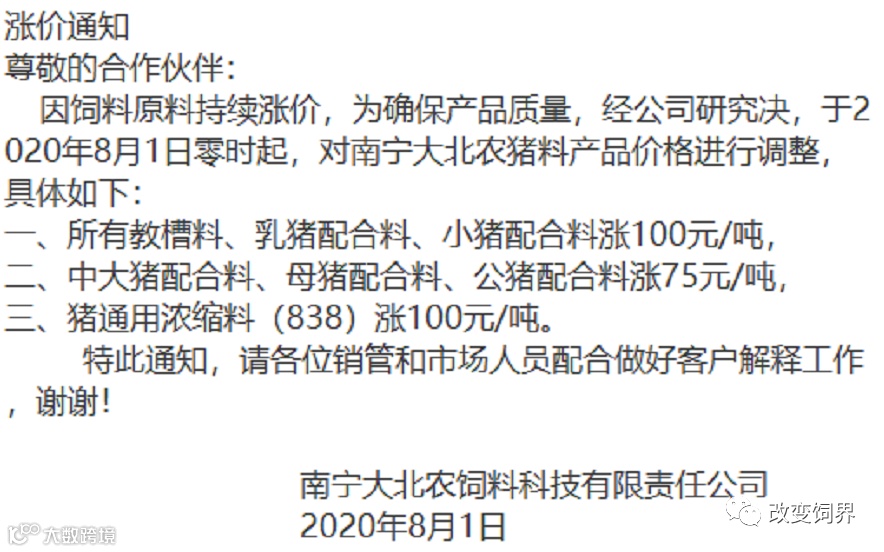 8月第一波涨价:央视报道后,嘉吉、希望、漓源、大北农等饲料企业宣布涨价75-200元/吨