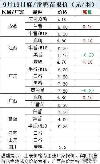 二、2022年9月19日麻鸭苗、半番鸭苗报价;