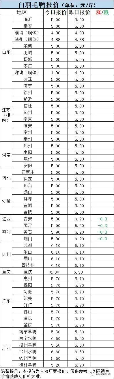 北方市场毛鸭报价弱势格局,市场消费疲软,鸭产品节后走弱,支撑不足,市场毛鸭交易平淡,局部交替下滑;