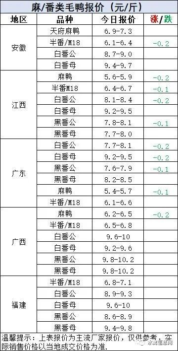 麻鸭苗报价继续上涨0.1元/羽,半番鸭苗报价稳定。成鸭下跌,鸭苗上涨,市场难挨。