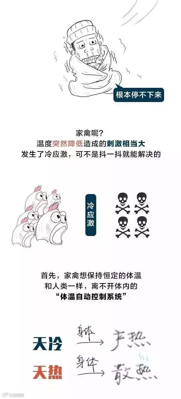 1、冷应激反应:当环境气温降低时