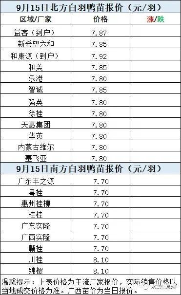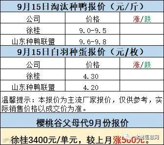 一、9月14日晚至9月15日 白羽肉鸭报价;
