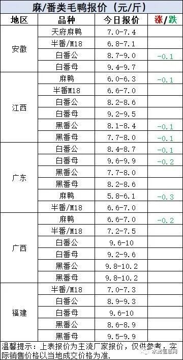 北方市场毛鸭平稳为主;南方活禽报价平稳为主,局部落后拉涨。