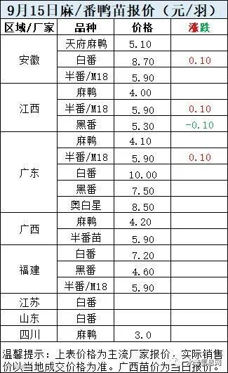 二、2022年9月15日麻鸭苗、半番鸭苗报价;