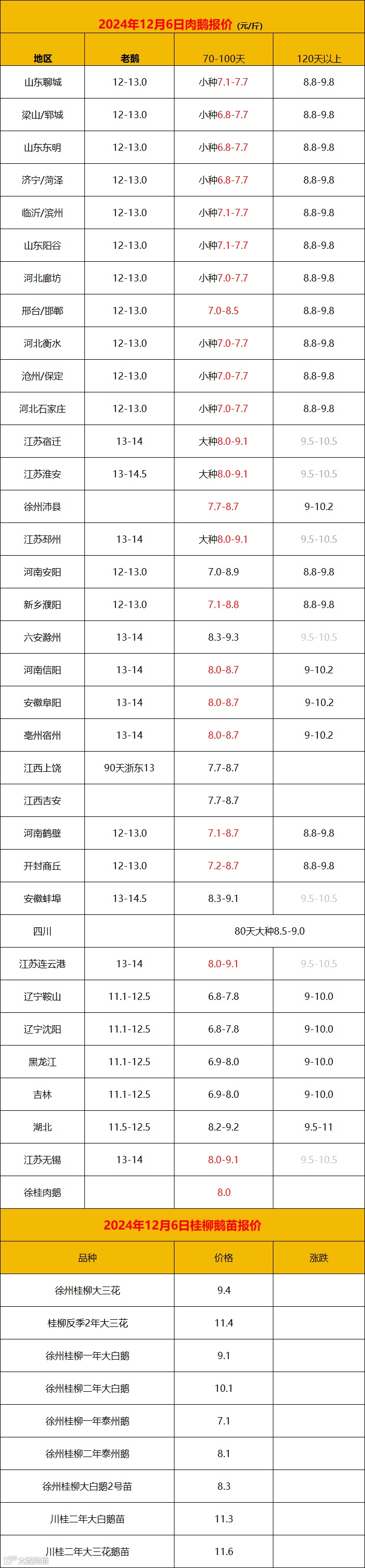 2024年12月6日鹅价快报