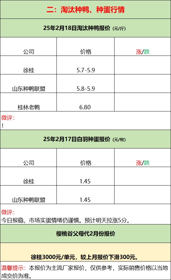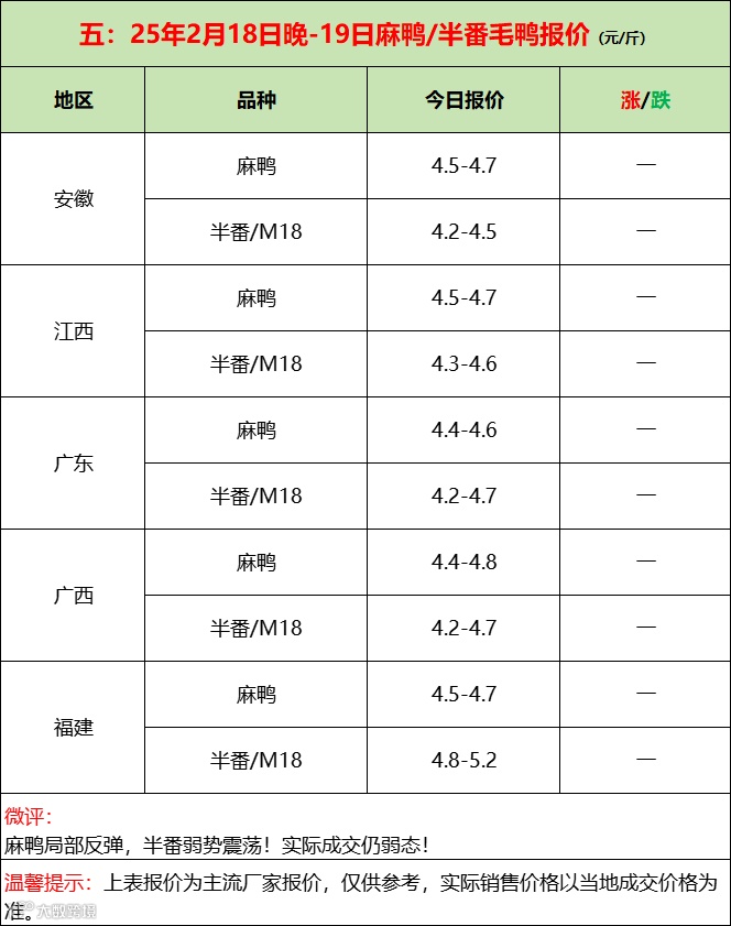 2025年2月19日水禽行情简报