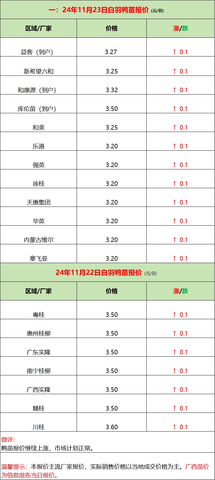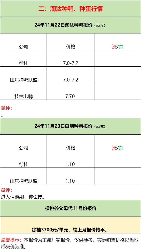 鸭苗继续上涨,博弈激烈深化;产品走货平淡,亏损幅度增加;--2024年11月23日水禽行情简报 益牧堂水禽信息