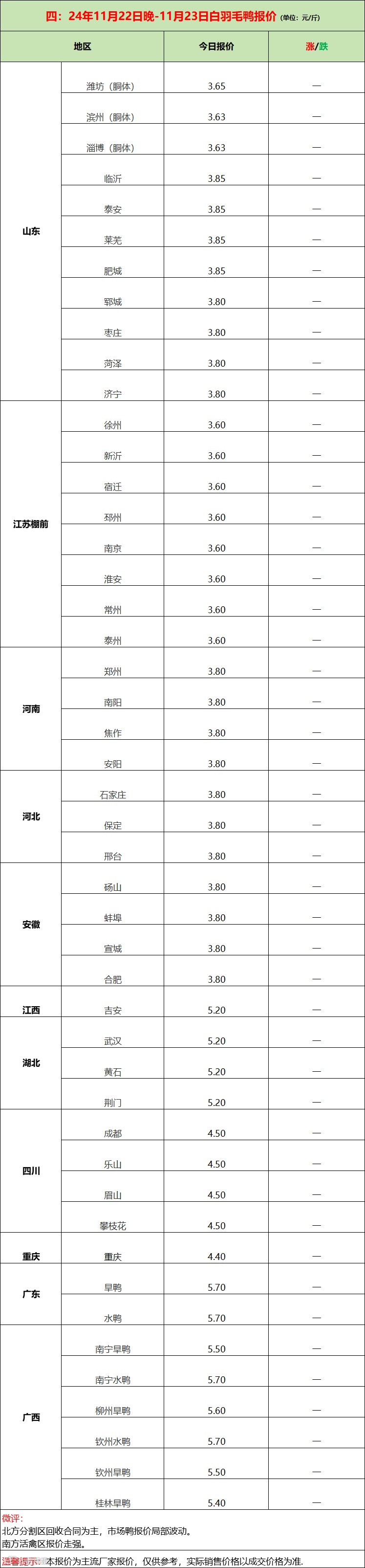 鸭苗继续上涨,博弈激烈深化;产品走货平淡,亏损幅度增加;--2024年11月23日水禽行情简报