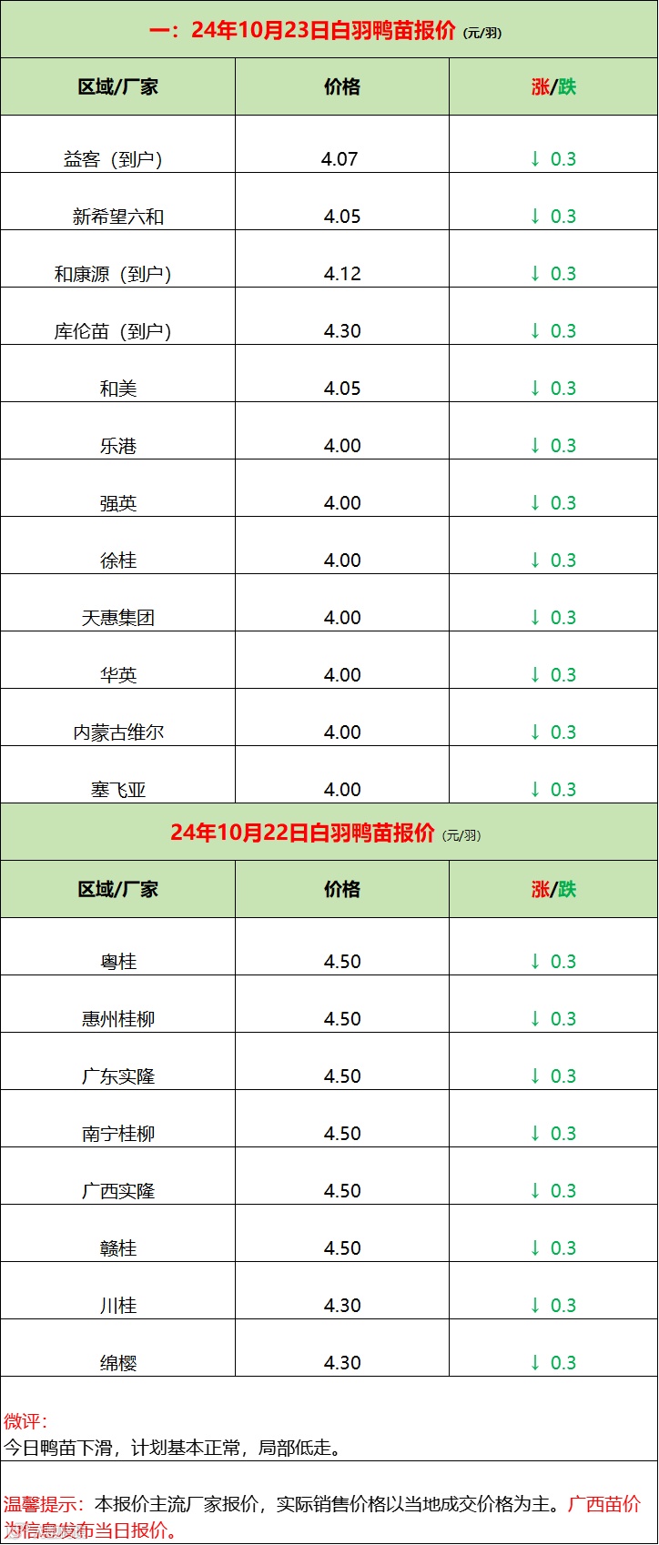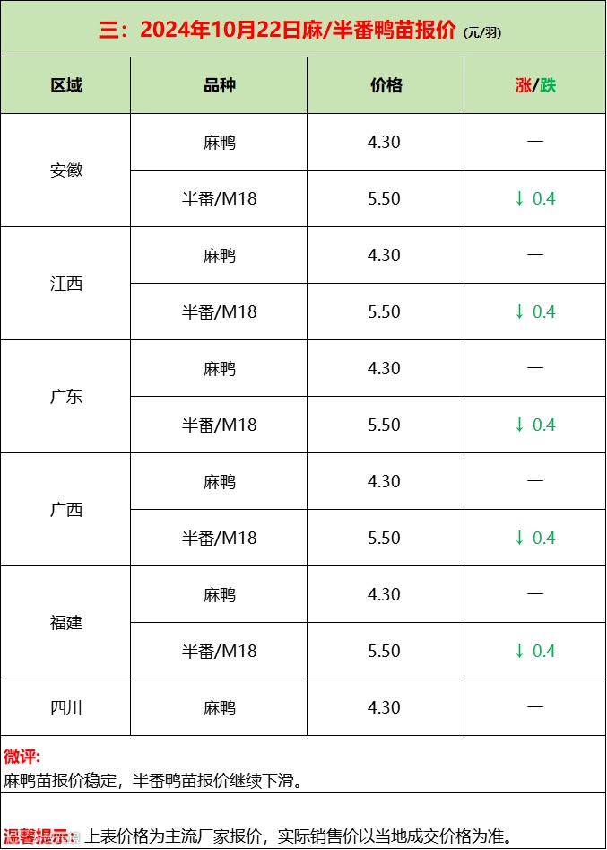 苗蛋下滑,博弈焦躁!--2024年10月23日水禽行情简报 益牧堂水禽信息