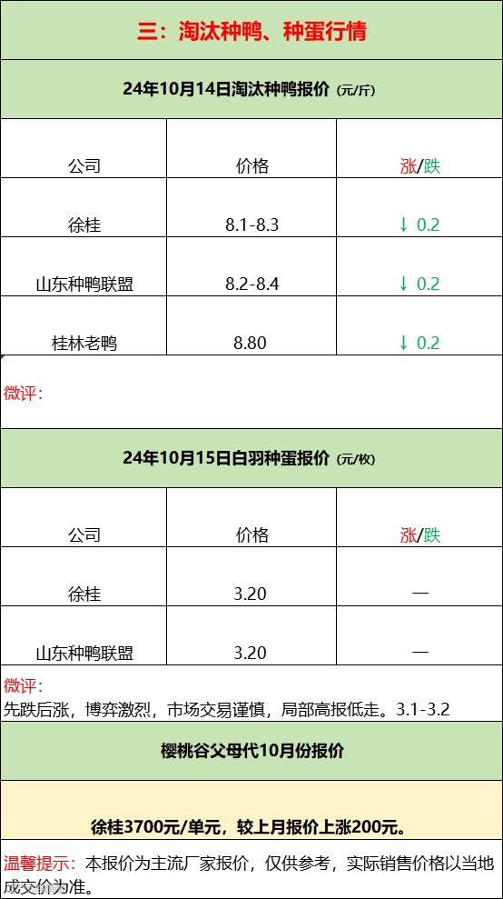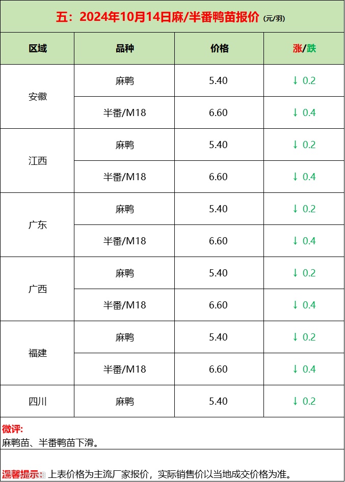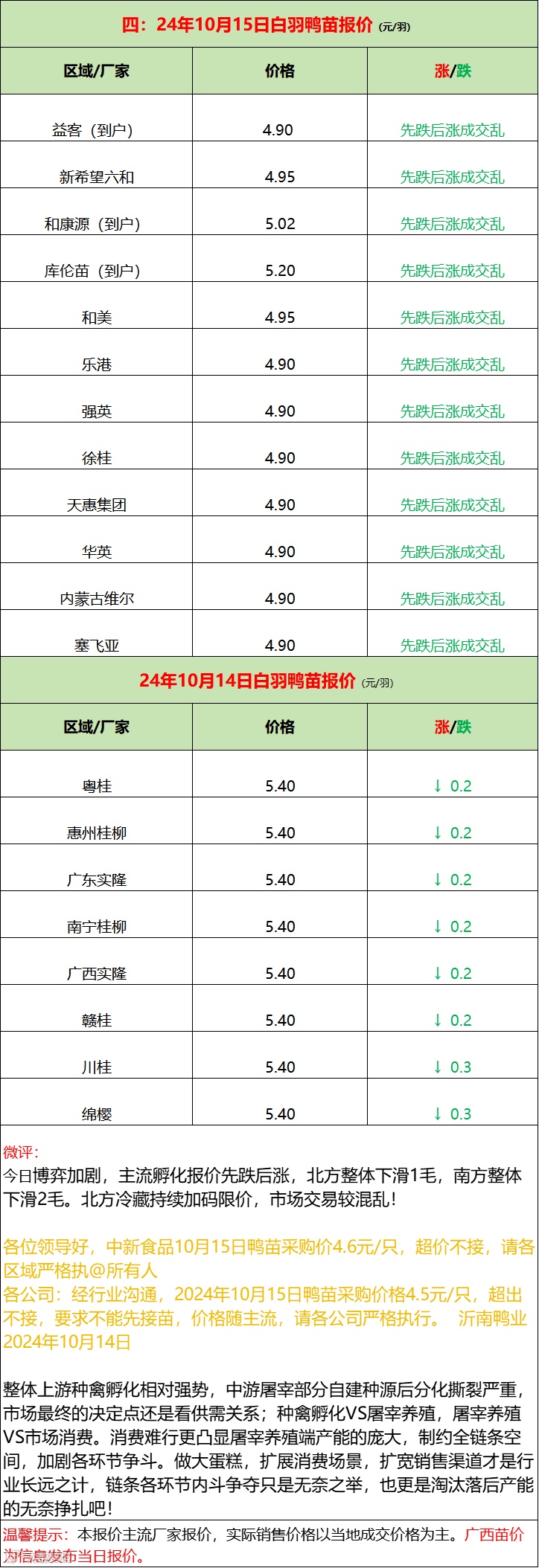 孵化先跌后涨,屠宰加码限价,鸭苗成交混乱!--2024年10月15日水禽行情简报