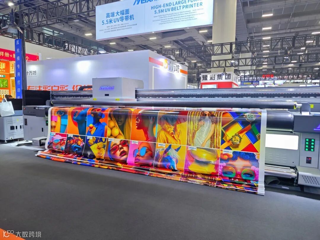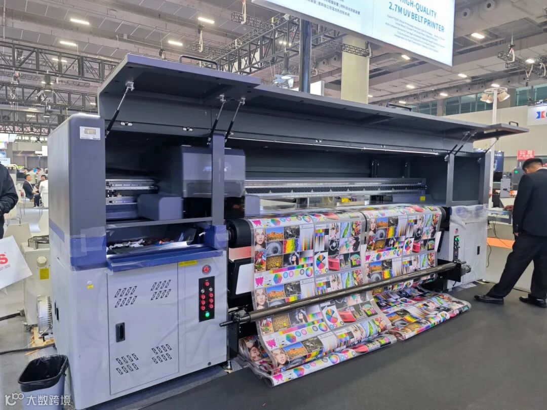视觉定位任意摆放、任意形状材料的精准对位打印,到彩白彩“双卷”材料高效出图,再到5.5米大型UV导带机呈现的惊艳“亮面打印”效果,每一项展示都让现场观众印象深刻。