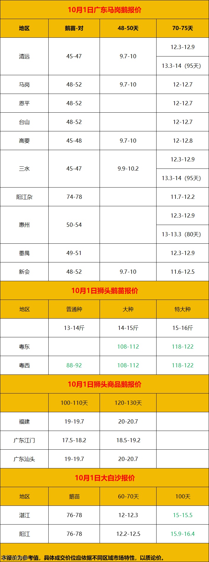 2024年10月2日鹅价快报