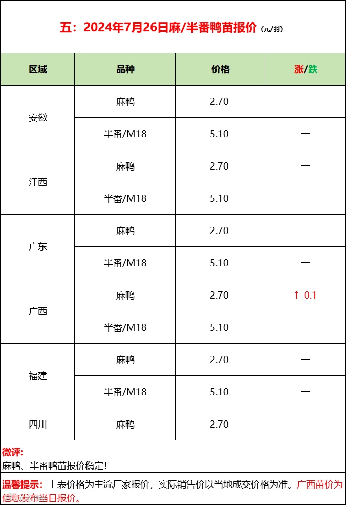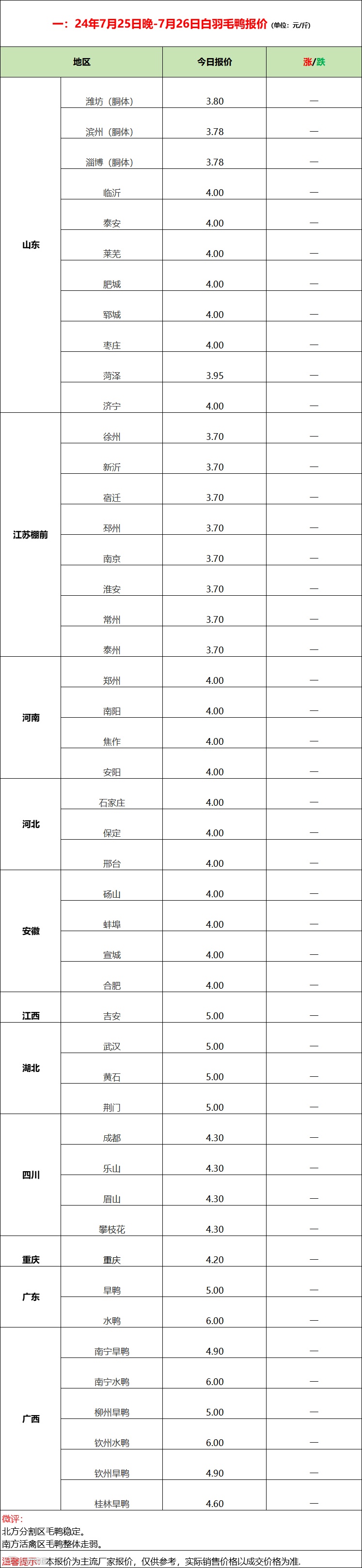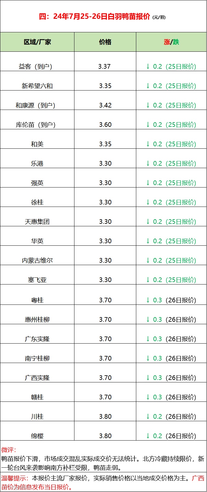 鸭苗转向下滑,产品局部推涨;--2024年7月26日水禽行情简报 益牧堂水禽信息