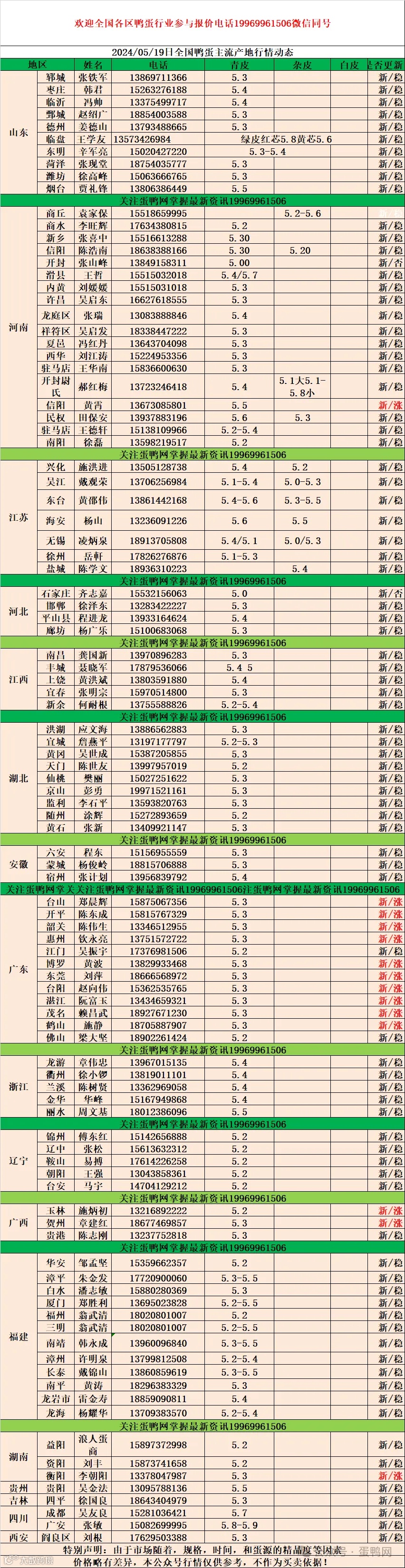 2024年5月19日商品鸭蛋报价