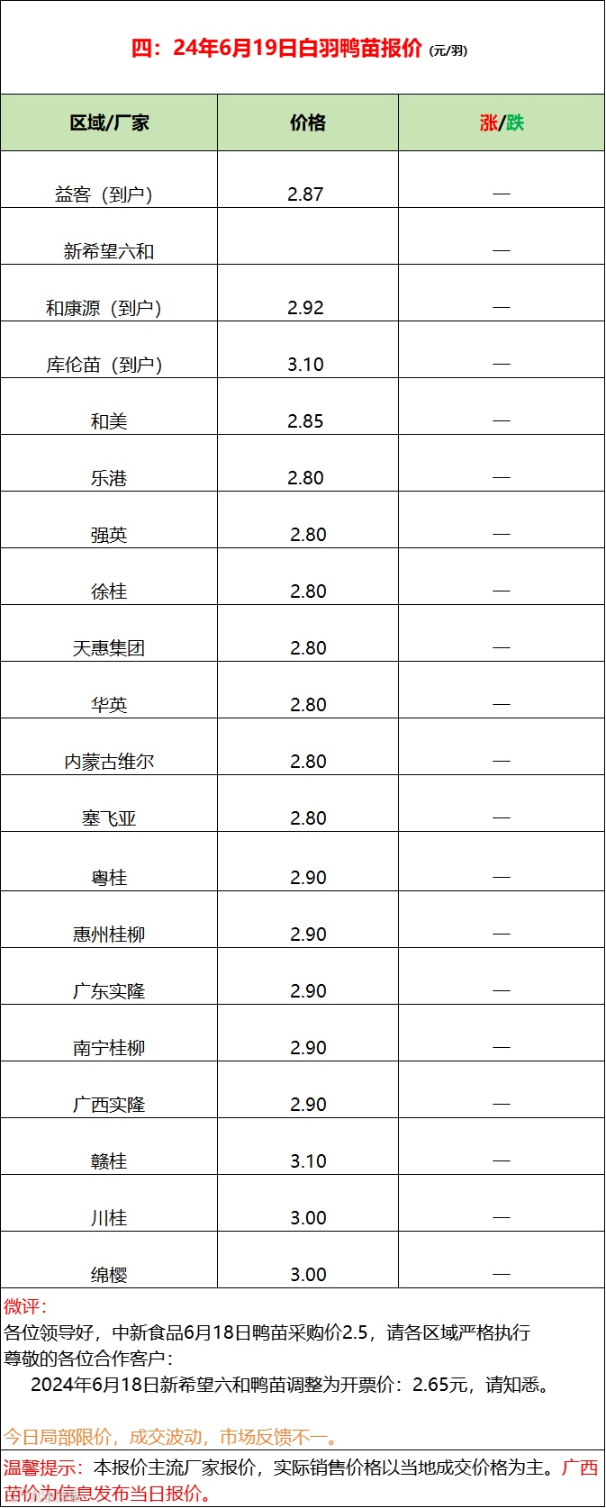 限价博弈鸭苗偏乱,活禽旱鸭继续推涨!--2024年6月19日水禽行情简报
