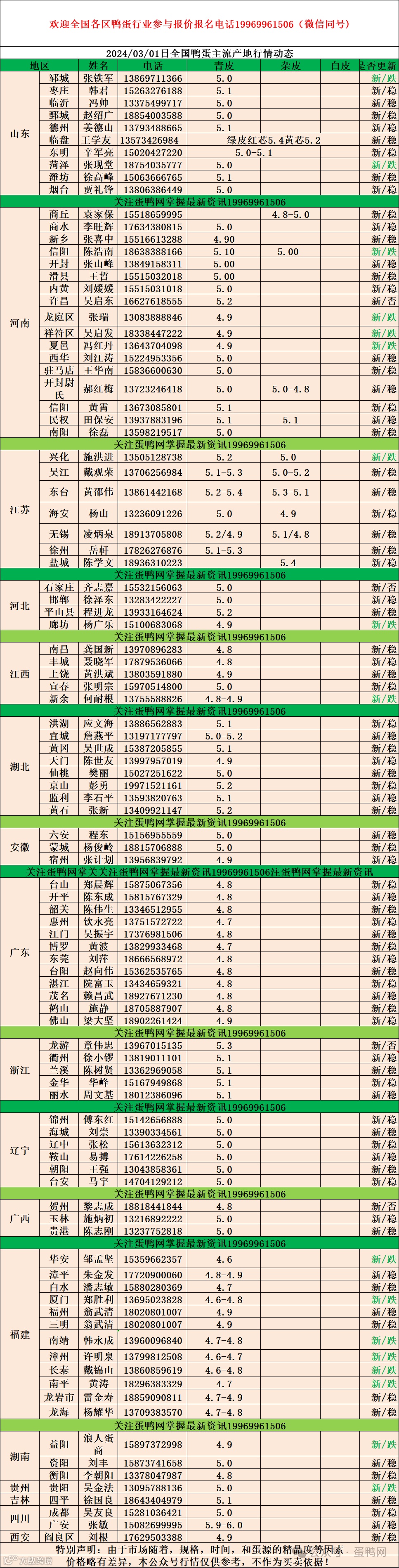 :活禽市场16元/斤左右。屠宰厂收购价13.5元/斤左右,淘汰鸭价格受毛色,体重,品种等影响的变化较快。