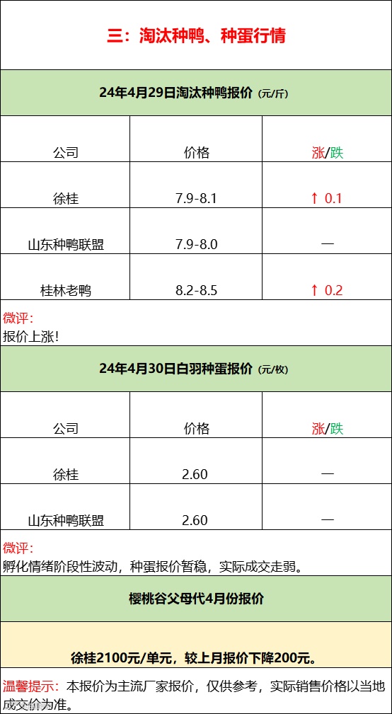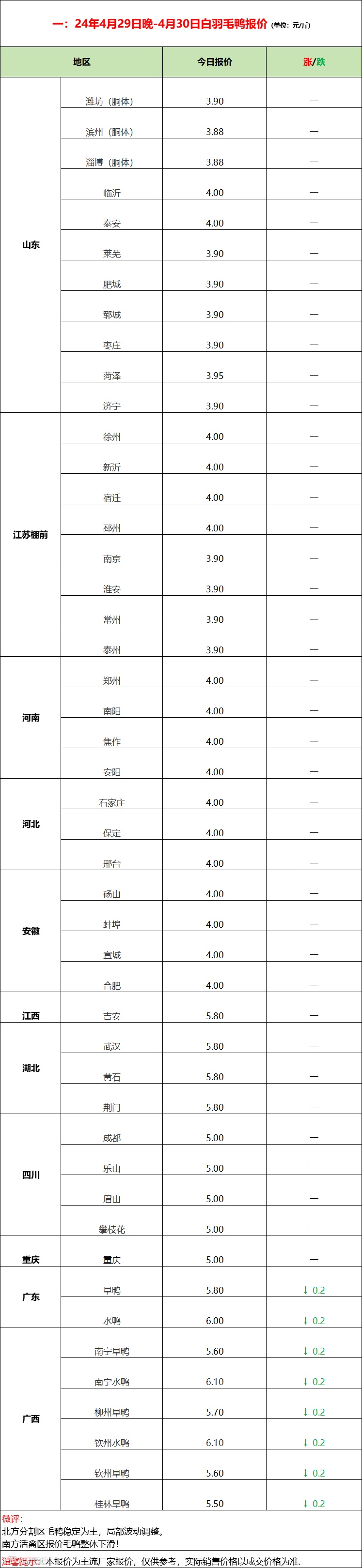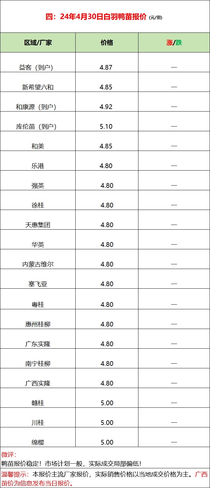 2024年4月30日水禽行情简报 益牧堂水禽信息