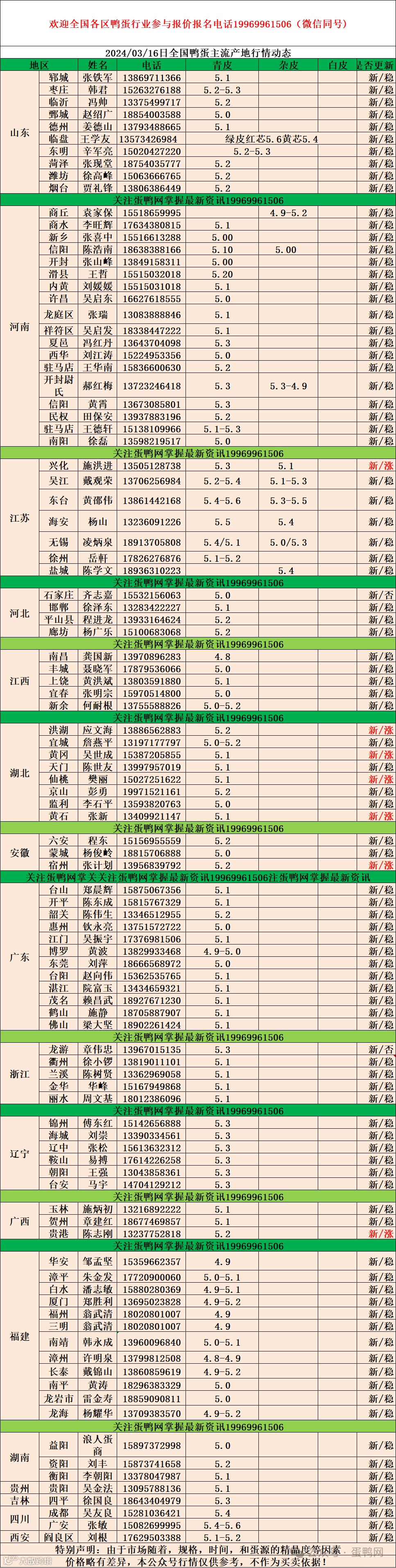 2024年3月16日商品鸭蛋报价
