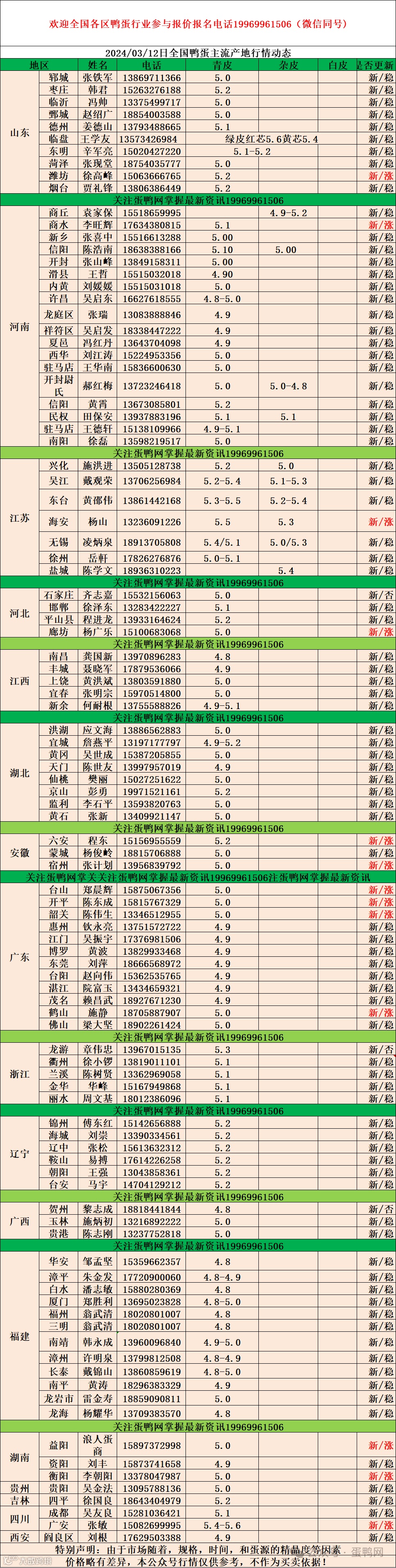 2024年3月12日商品鸭蛋报价