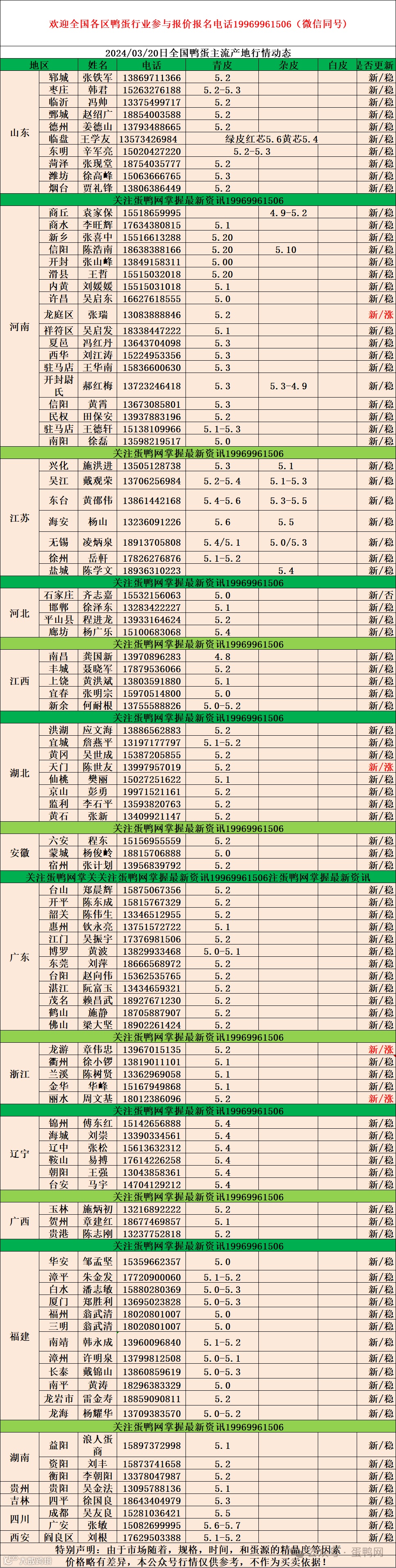 2024年3月20日商品鸭蛋报价