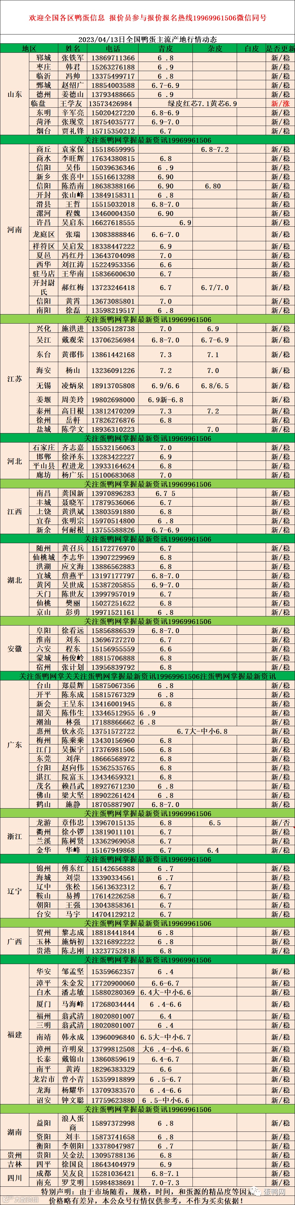 2023年4月13日鸭蛋报价