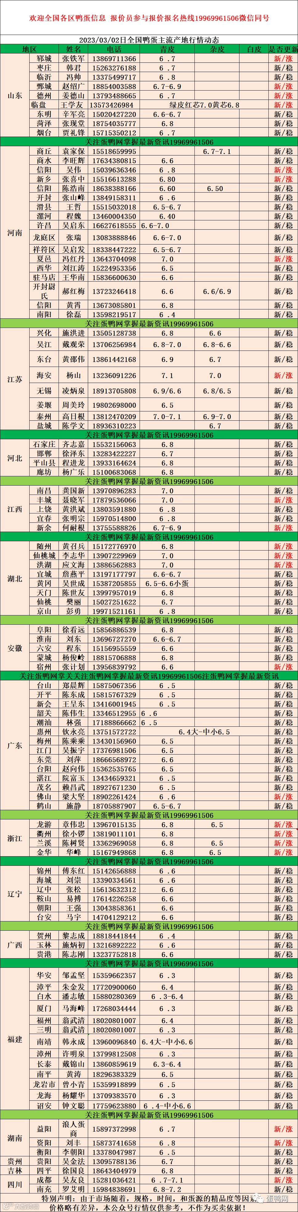 2023年3月2日鸭蛋报价