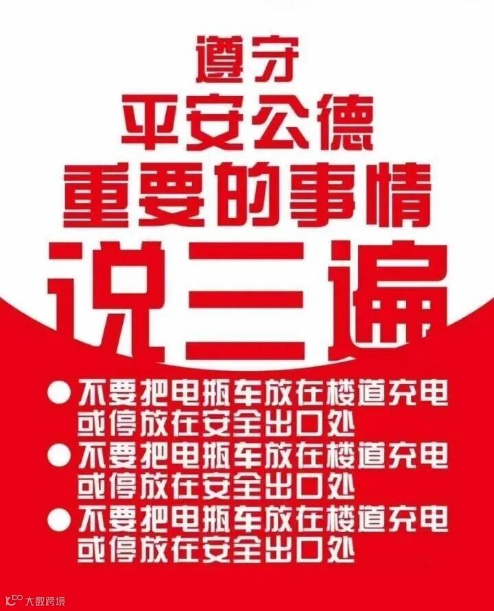 请勿将电动车停放于楼内、室内充电