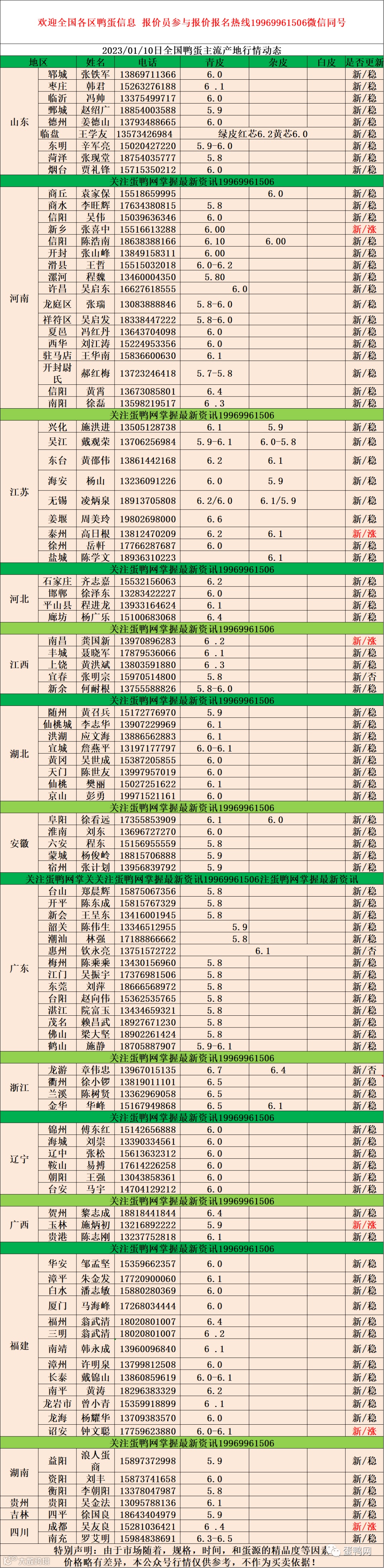 2023年1月10日鸭蛋报价