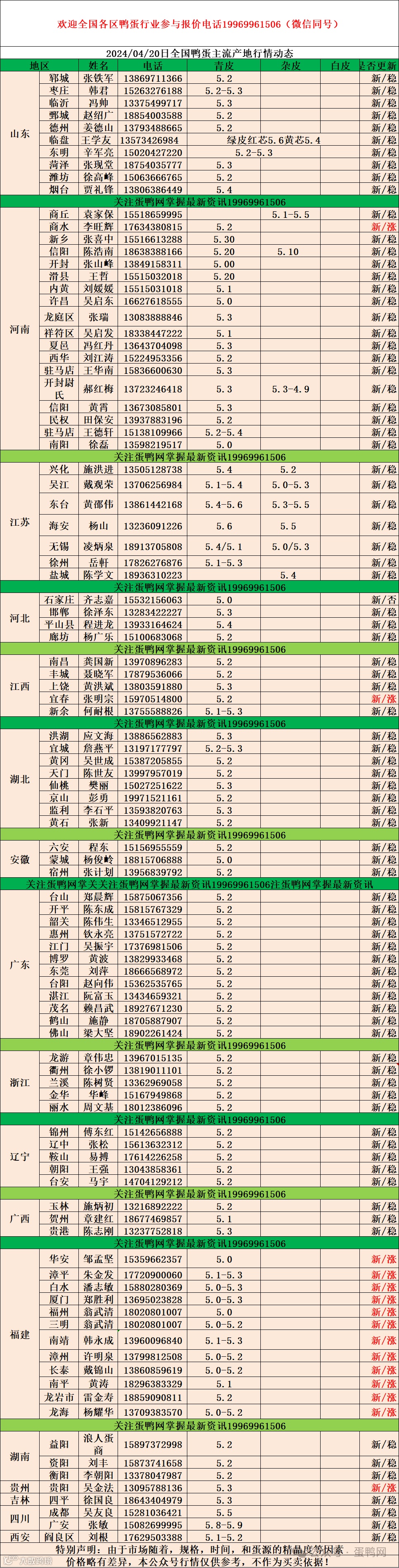 2024年4月20日商品鸭蛋报价